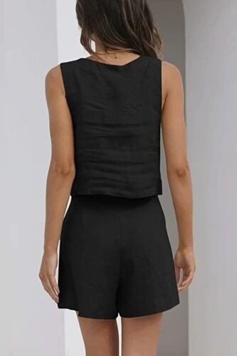 100% Organic Cotton Linen Two Piece outfits Women Linen shorts set crop tank top