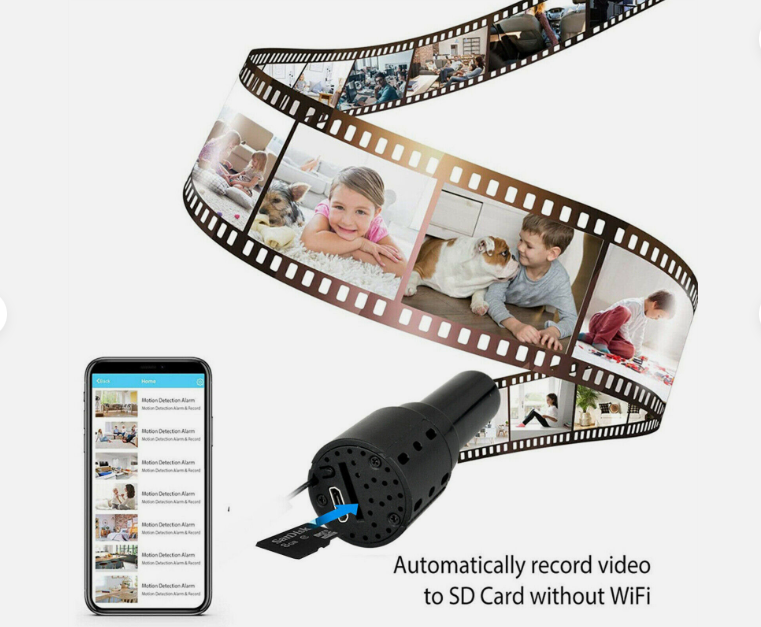alarm recording, Bracket, Built-in Microphone, loop recording, Microprocessor Technology, Mini Surveillance Camera, motion detection, Multi-user viewing, remote viewing, Wi-Fi