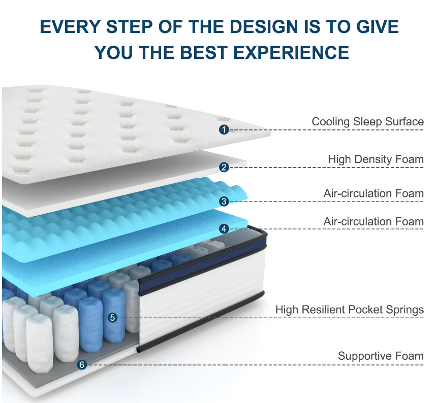 Support system:  This sleep mattress built-in high quality Individual pocket spring and springback foam systerm not just providing better support for your body, but also can absorb more pressure come from your body and the spring, providing more buffers for your body. Fully relax your muscles, greatly improve your sleeping quality.