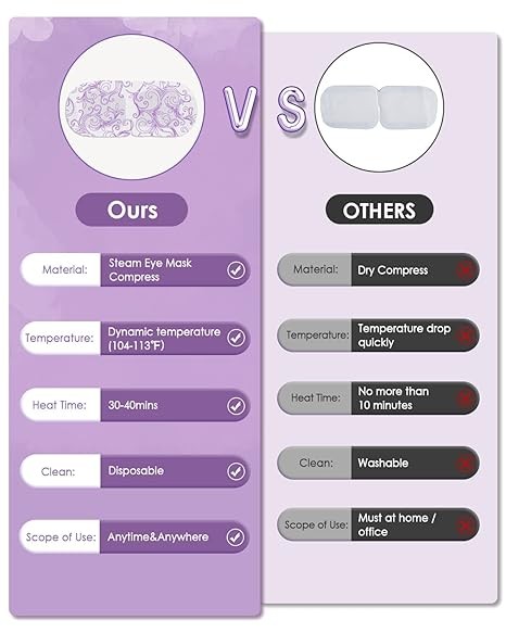 • ✔DOCTOR RECOMMENDED- If you want to relieve eye strain, eyes treat dry eyes, pink eye. This moisturizing hot therapy promotes blood circulation for your under eyes, relief for migraine, Headache, Dry eyes, allergies, dark circles, puffy and itchy eyes. You will enter a good sleep accompanied the faint lavender floral scent.
