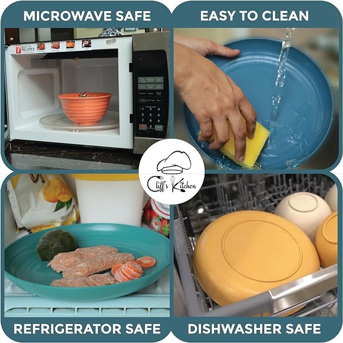 • ?Convenient and Easy to Use: Our wheatstraw dinner plates set is microwave and dishwasher safe. With Cliff’s kitchen dinner set you can effortlessly freeze, heat and clean your meals, making them perfect for busy families on the go