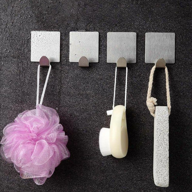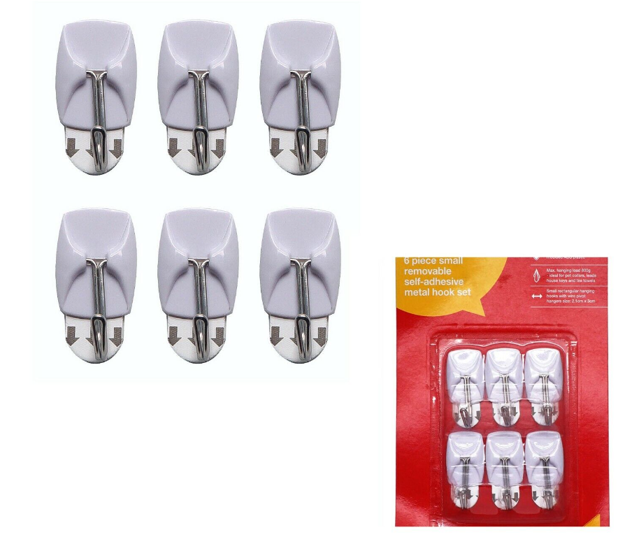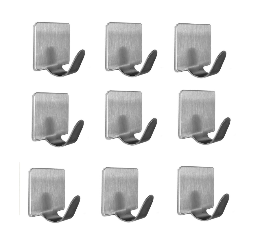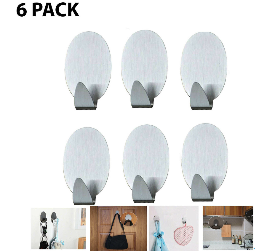 6/12 Pcs Self Adhesive Hooks Stainless Steel Strong Silver Sticky on Wall Hang