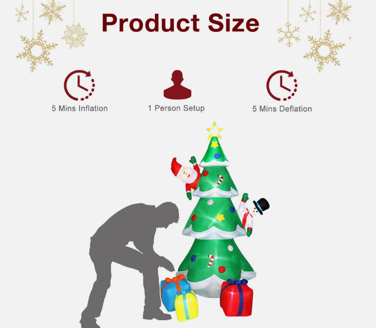8FT Inflatable Christmas Tree Snowman Santa Claus +LED Lights Outdoor Yard Decor