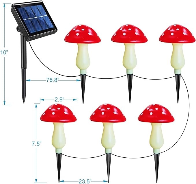 • 【Upgraded Mushroom】--- new version, larger solar panel, look more natural and working longer. they are going to be a perfect outside Garden, patio, flowerbed, walkway, backyard,flower garden, pathway, cemetery, new year, valentine's day, christmas, easter, halloween, thanksgiving decoration magic mushroom lights.