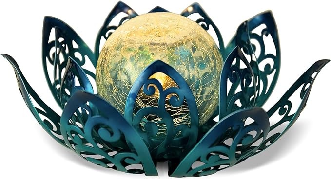 • 【Exquisite Lotus Light Decoration】- The pretty lotus lights are made of high quality metal and thick glass ,and the ice-cracked glass spheres refract warm light through metal blades.