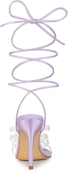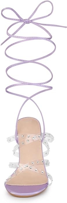 Allegra K Women's Strappy Rhinestone Clear Straps Lace Up Stiletto Heel Sandals