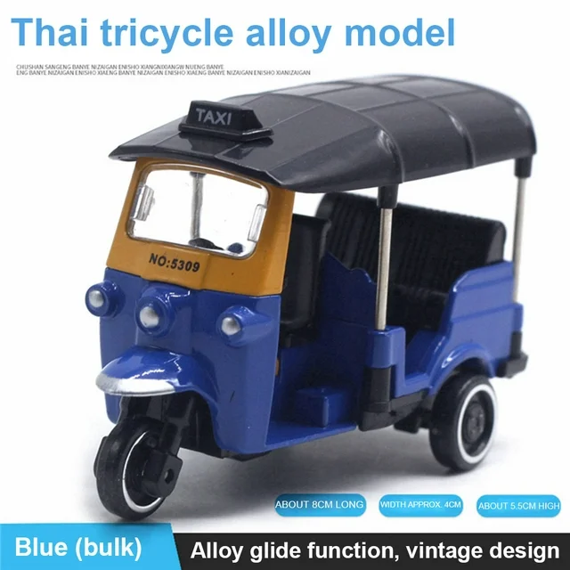 Alloy Vintage tricycle model toy, this carefully crafted model brings back a nostalgic feel with its vintage design and realistic details. The toy is made of high-quality alloy materials and comes in randomly selected colors to add an element of surprise to every purchase. Measuring 8x4x5.5 cm, it boasts a true and accurate body that replicates every aspect of the original tricycle. The exquisite packaging makes it perfect for collection, gift or decorative purposes.