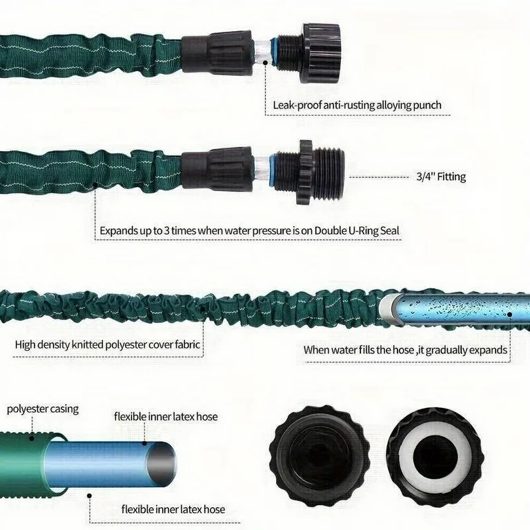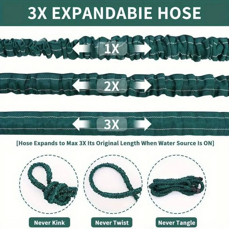 Water Your Garden Effortlessly And Forget About Struggling To Carry And Untangle Your Water Hose Once And For All Thanks To The Ultimate Expanding Water Hose!The AmazingForLess Expandable Water Hose is a versatile solution for all your outdoor watering needs. Crafted with durable yet lightweight materials, this hose is designed to withstand daily use. Its innovative expandable design providing extended coverage for your garden, car wash, and cleaning tasks.Don't miss out on exclusive deals – buy now enjoy the convenience of premium outdoor watering equipment. Available in 2 colors(Blue,Dark Green) and 5 sizes (25ft, 50ft, 75ft, 100ft, 150ft). Enhance your gardening experience with AmazingForLess expandable water hose!