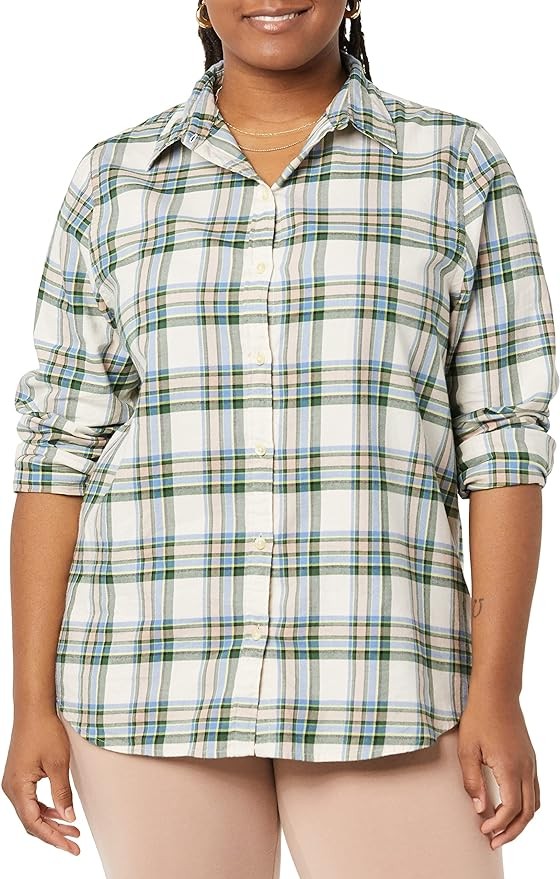 Amazon Essentials Women's Classic-Fit Long-Sleeve Lightweight Plaid Flannel Shirt