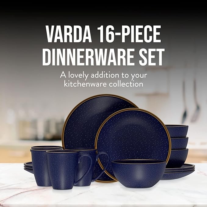 American Atelier Varda Round Dinnerware Set, Blue – 16-Piece Stoneware Dinner Party Collection 4 Dinner Plates, 4 Salad Plates, 4 Bowls & 4 Mugs (Cobalt)