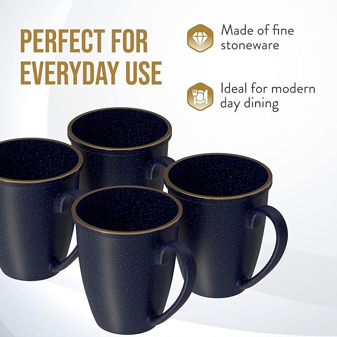• ROUND DINNERWARE SET – Gorgeous 16-Piece Collection Provides Full Dinner Service for Four People w/ 10.75 inch Dinner Plates, 8.5 inch Salad Plates, 6 inch Soup Bowls & 13 oz. Mugs