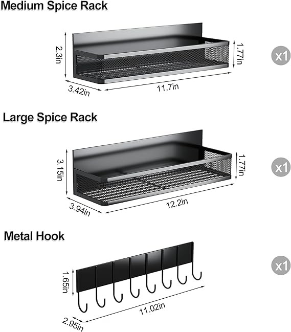 Aufworld Magnetic Spice Rack for Refrigerator, 3 Pack Magnetic Shelf, Moveable Fridge Organizer with 8-Hook Rack, Seasoning Organizer for Kitchen