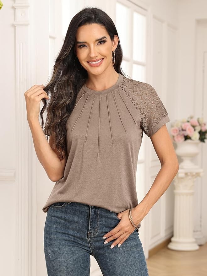 AUTOMET Womens Tshirts Trendy Fashion Tops Lace Short Sleeve Business Tee Shirts Casual Knitted Blouses Summer Outfits 2024