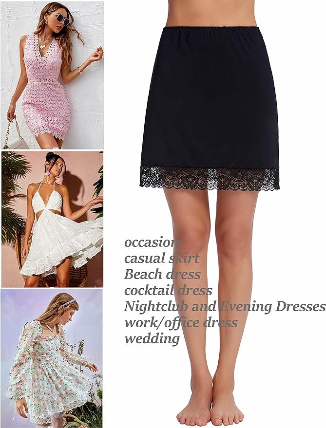 • 【Occasion】The lace underskirt is great to wear under any rise of skirts and dresses, long or short. Pair this comfortable and smooth half slip to feel the freedom.This classic half slip skirt creates a smooth look under any outfit, providing you with a touch of class as well as comfort. It's a great everyday base layer with a thick material that isn't scratchy. It's comfortable and above the knee, making it perfect for women on the go.