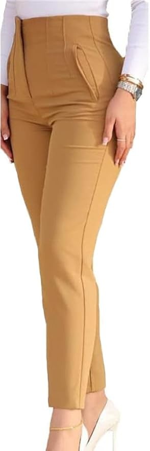 DESIGN DETAILS: This womens high waisted pants feature a high-waisted straight leg style, pleated front, slim fit, zipper closure, solid color, two side pockets. The high waisted design that accentuates your waistline and flatters your figure.