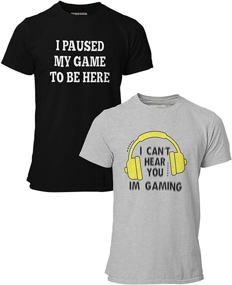 2-PACK COMBO: A Convenient and easy way to dress and make multiple different outfits! With COOL designs, including FUN phrases (I Paused My Game to Be Here, Eat Sleep Game Repeat, I Can’t Hear You I’m Gaming, etc.) and STYLISH prints! Enjoy all of these AWESOME colors of Black, Grey, Red, White and more!