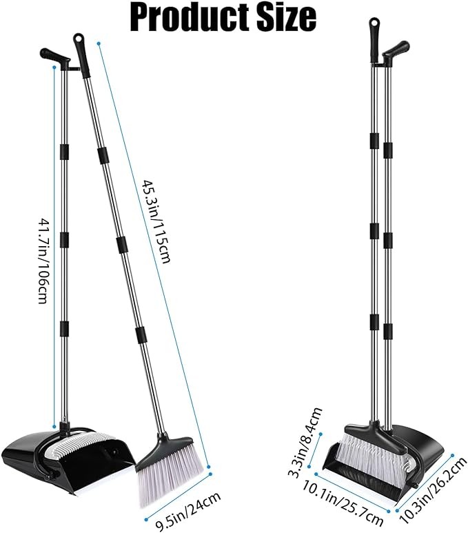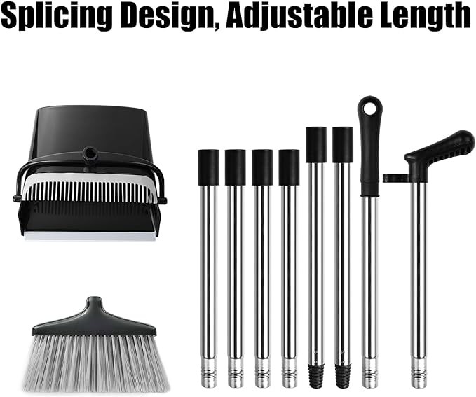• ★【Extended and Adjustable Long Handles】Brooms and dustpans have extended handles and a splice design that can be adjusted in length as needed. Broom lengths are available up to 45.3". This is great for tall people as well as those with lower back problems.