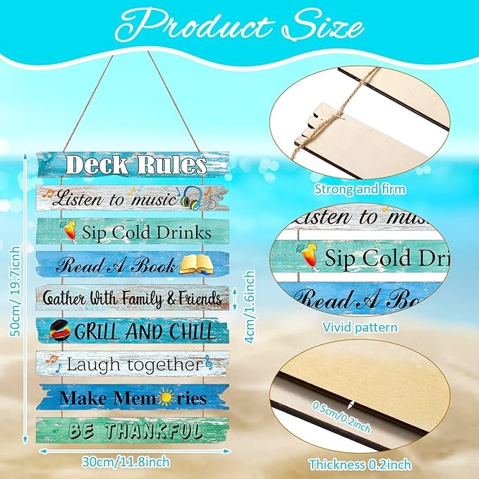 • Deck Wall Decor Applications: our farmhouse deck wall decor is suitable for deck, pool, kitchen room, office, bedroom and so on, work good as deck decorations, summer decorations, pool decorations, backyard decoration, summer beach decorations, tropical party decorations, and you also can hang it on boat, ocean theme room, backyard, outdoor and living room