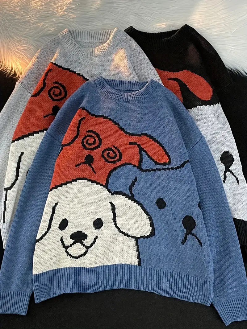 Cartoon Dog Casual Crew Neck Sports Sweater, Longs Sleeve Casual Pullover Sweater, Women s Tops details 1Cartoon Dog Casual Crew Neck Sports Sweater, Longs Sleeve Casual Pullover Sweater, Women s Tops details 1
