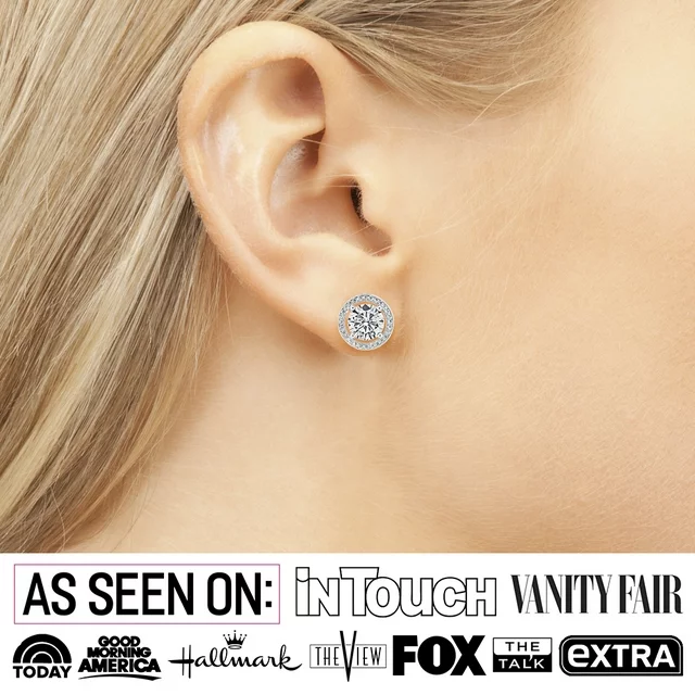 Cate & Chloe Ariel 18k White Gold Plated Silver Halo Stud Earrings | CZ Earrings for Women, Gift for Her