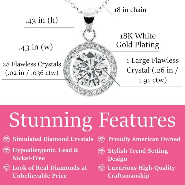 Cate & Chloe Blake 18k White Gold Crystal Halo Necklace for Women