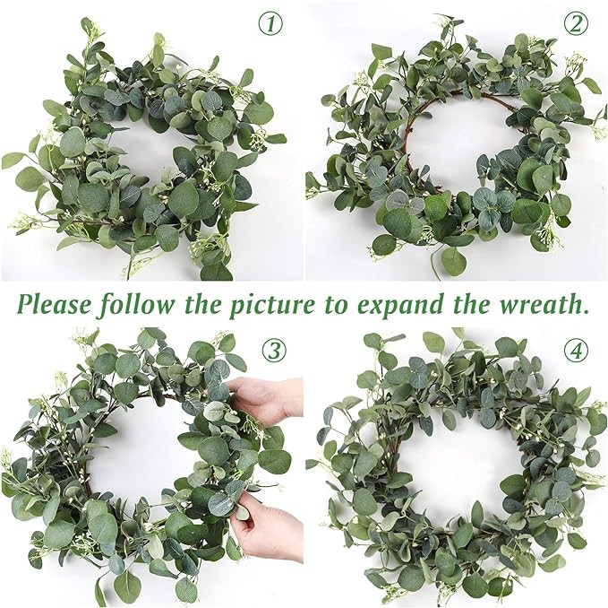 • Size: Fully expanded eucalyptus wreath, the inner diameter is about 25cm/10 inches; outer diameter is about 48cm/19 inches.
