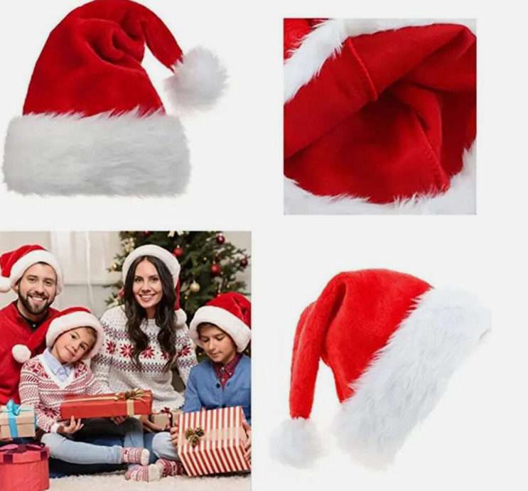 1. High-Quality Material: This Christmas plush cloth Santa hat is made of soft plush cloth material, comfortable to touch.