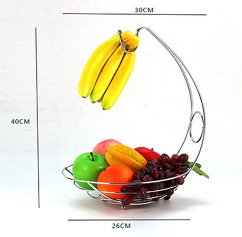 Chrome Banana Hanger Fruit Bowl Tree Holder Basket Stand