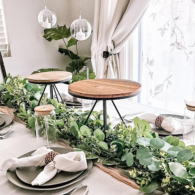 CQURE 5Pcs Eucalyptus Garland,Artificial Eucalyptus Leaves Table Greenery Garland Wreath Vines for Wedding Party Table Fireplace Bedroom Wall Room Decor