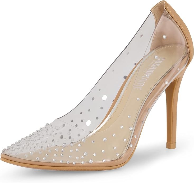 CUSHIONAIRE Women's Glam Clear Rhinestone Dress Pump +Memory Foam
