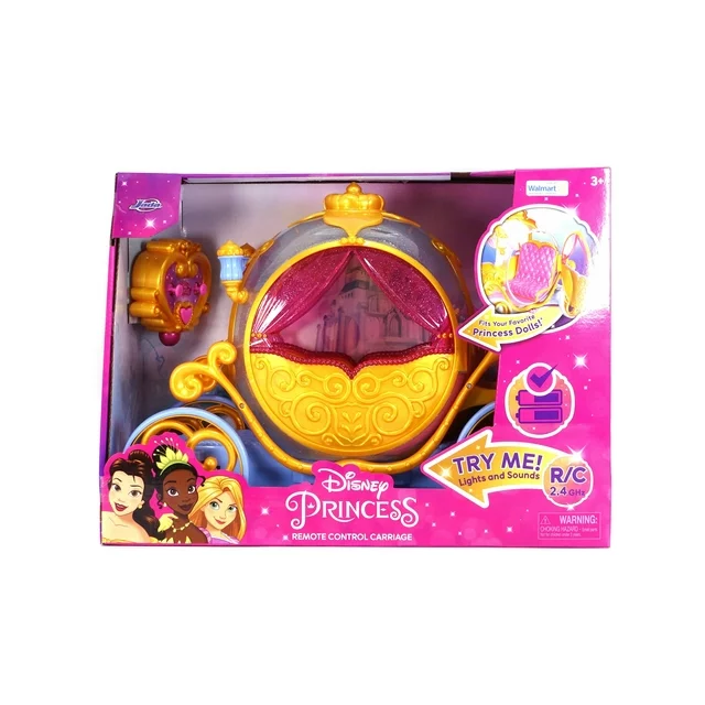 This Princess Carriage is for you!  Place your favorite Disney Princess doll in the regal coach and off you go.  Beautifully designed with swirls and scrolls, the carriage travels forward, backward and even in magical circles.  Easy to operate and perfect for indoor and outdoor fun.  Get your friends ready for the ultimate adventure