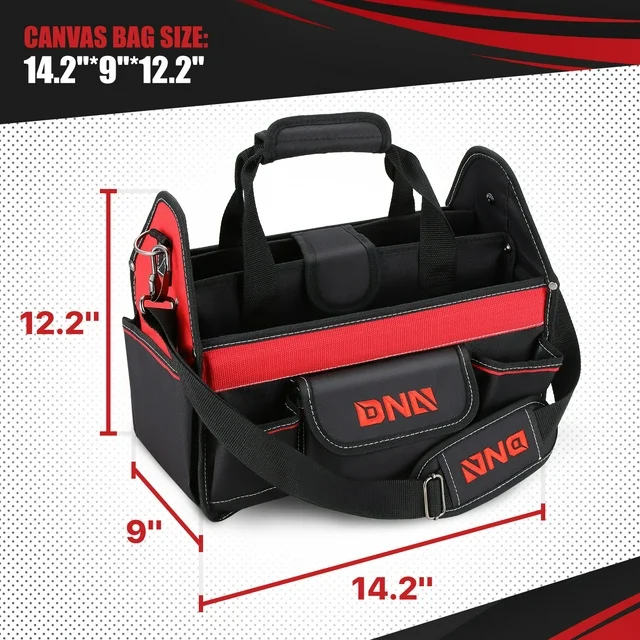 DNA Motoring TOOLS-00207 Red 21 PCs Portable Tool Kit Household General Repair Combination Pliers Adjustable Wrench Set Hand Tool Canvas Bag