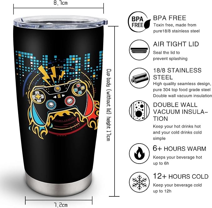 DOAKIZZ Gamer Gifts for Men,Gifts for Gamers Men Boys,Best Gaming Gifts for Men,Video Game Gifts,Gamer Birthday Decorations,Gifts for Game Lovers Stainless Steel Tumbler 20oz 1PC