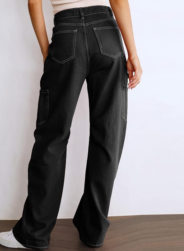 Dokotoo Women 6 Pockets High Waisted Cargo Pants Wide Leg Casual Pants Combat Military Trouser US 4-18