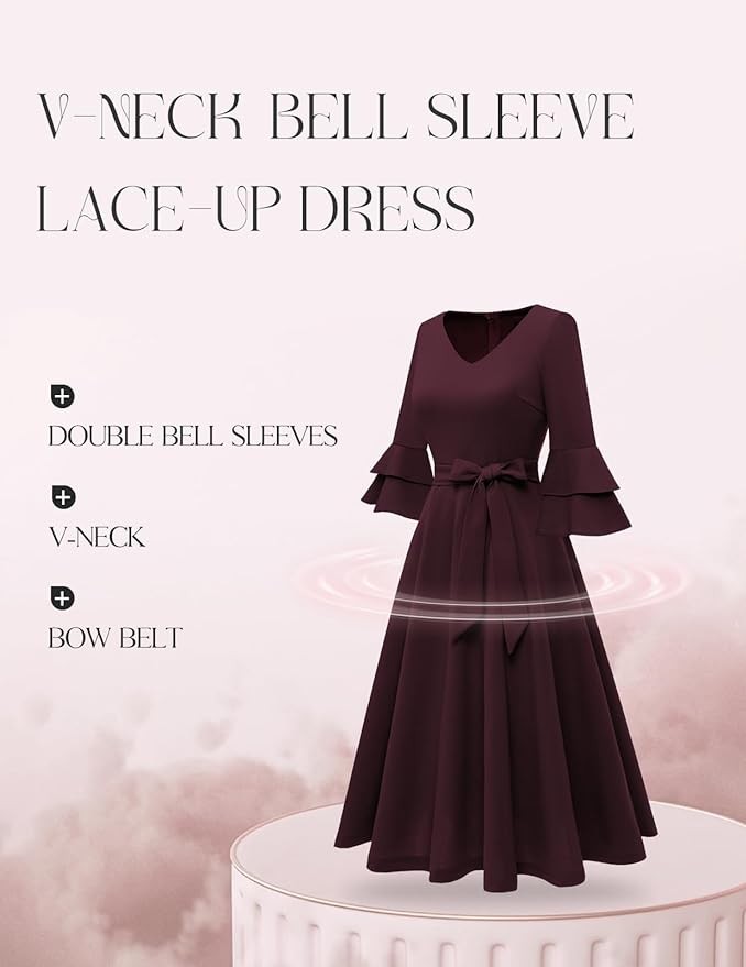 • ?【Exquisite Details of a Formal Dresses 】The mid-length A-line hemline design gives the dress classic femininity will mesmerize onlookers. The carefully crafted decorative waistband add a touch of elegance and accentuates your waistline, with the unique stylish double bell sleeves creating a fashionable and exquisite look that will make you the center of attention! (Belt Tie on Details Page) Please take photos in this versatile church dress.