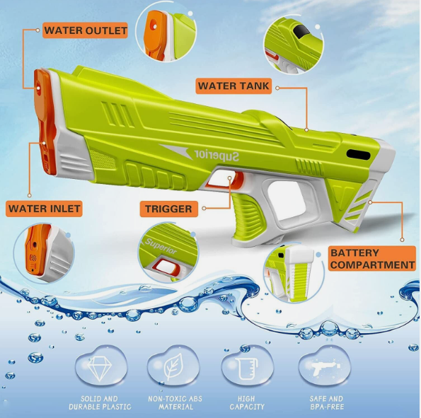 Electric Water Gun for Kids Squirt Guns Full Automatic Water Absorption Soaker Summer Toys Outdoor Toys Pool Toys Airsoft Pistol Automatic Summer Toy Induction Water Absorbing for happy Summer Party + 1 manuelle water hand pistol 【Range】: The water gun refers A range of up to 8-10 meters to how far the water can travel when sprayed from the gun, which is impressive for a toy water and will allow the user to hit targets from a greater distance. 【Design】: This refers to the physical appearance and ergonomics of the toy. The technological appearance design can be eye-catching and add to the play experience. Additionally, a well-designed water toy should be comfortable to hold and easy to operate. 【Playability】: With the automatic water absorption feature and impressive range, this water toy is highly playable and will provide a fun and engaging experience for kids of all ages. 【Durability】: The kids toy electric water gun refers a durable water toy to how well the water toy can withstand regular use and exposure to water, which will last longer and provide more value to the kids. Additionally, a durable water toys can be more environmentally friendly than traditional, disposable water toys. Product information: 【Color】: Blue or Green 【Specification】: 43*17.5*4.5cm, 560g 【Material】: ABS Plastic 【Water tank capacity】: 330ml 【Packing list】: Water gun*1 ,Screwdriver*1, Battery*1, usb cable*1, + manuelle water hand pistol*1 Free Shipping We are happy to offer most of our products all across the globe. In order to provide FREE worldwide shipping, extended handling times may be necessary in order for us to secure your items for shipping. Items are typically shipped out within 3-5 business days and can take up to 45 days for delivery from date of purchase. Please note that in many cases, items arrive much earlier than our projected delivery date. Please carefully review your item before placing your order to see the estimated delivery dates for your local area. Returns We want you to be 100% satisfied with your purchase. so would be happy to accept a return. You will have 30 days from delivery date to return your item for any reason. Note that for damaged items, missing parts, or quality issues, we do require a photo as proof to quickly resolve your issue. Please note, however, that some items do require a 20% restocking fee which will be applied to the cost of the return shipping label. Items with restock fee include electronics, items over 50 lbs and items over $200 US Dollar. Restock fee also applies to situations of buyer’s remorse, changing your mind, or canceling an order that has already shipped. Please know that we inspect all of our items before shipping them out. If any item is received as damaged or defective, your return is 100% free and valid for 30 days after delivery date. |