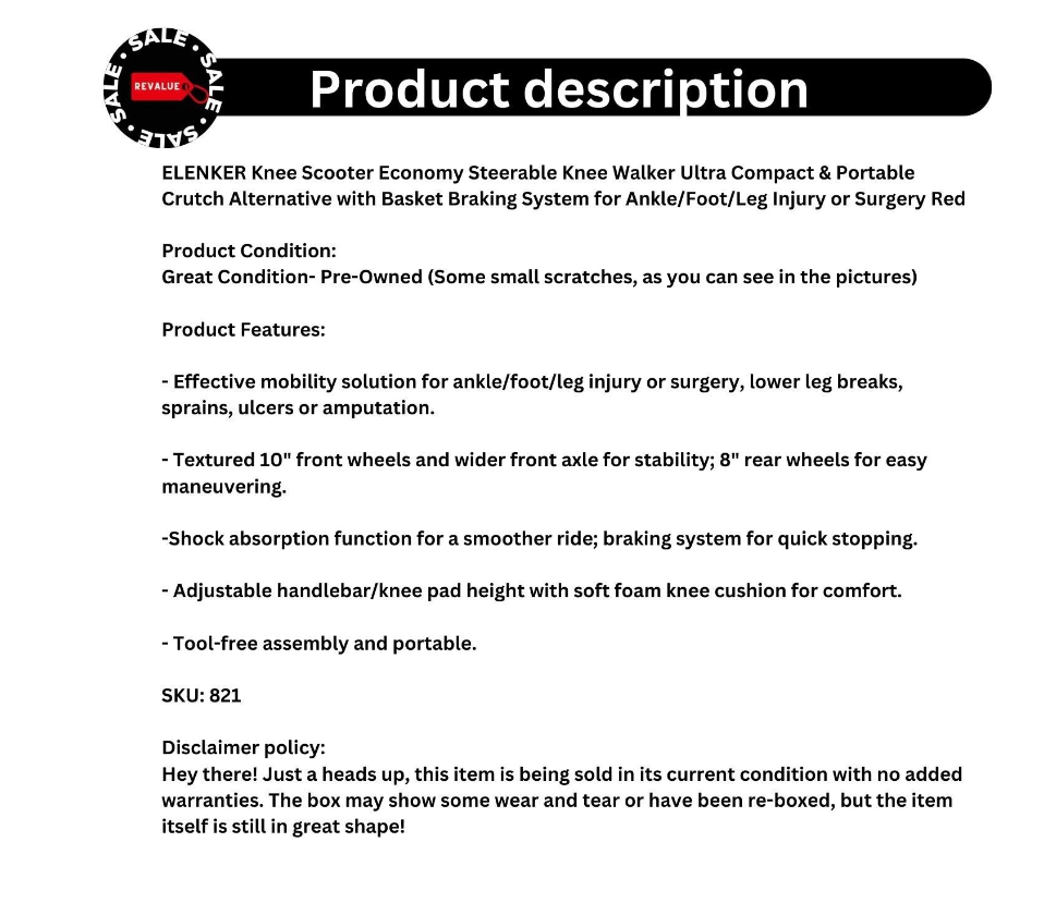 ELENKER Knee Scooter Economy Steerable Knee Walker Ultra Compact & Portable Crutch Alternative with Basket Braking System for Ankle/Foot/Leg Injury or Surgery Red