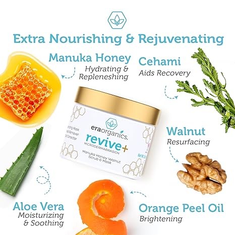 Era Organics Microdermabrasion Facial Scrub & Face Exfoliator - Spa Quality Exfoliating Mask with Manuka Honey Walnut Moisturizing Exfoliant for Dry Skin, Blackheads Wrinkles (2 oz)