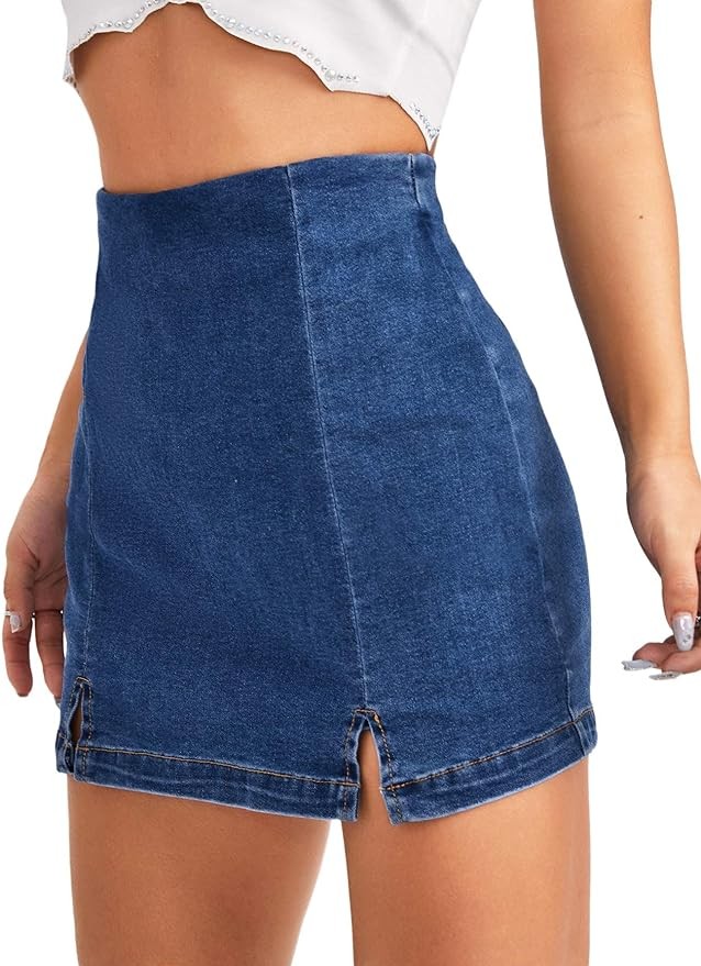 Floerns Women's Casual Split Hem High Waist Denim Skorts Skirt Shorts