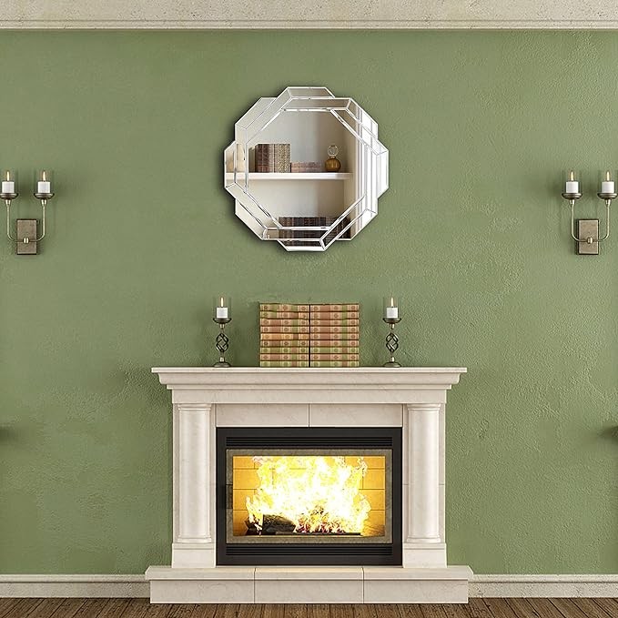 • SOPHISTICATED DESIGN: The decorative mirror is designed with specified small polished slices mirror around the rim.Each edge is carefully beveled. It is sleek, modern and clean in the light.Our solid wood backing design reinforce the product,which is more safety and stable than others.