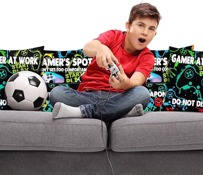 • 【Double-side Printed Pillow Case】The words printed in the front side is a great way for gamers really to "reserve" their spot on the couch! The back side is printed with “Do Not Disturb,Gamer At Work” together with an image of gaming signs. This pattern will lighten the mood and made everyone laugh!