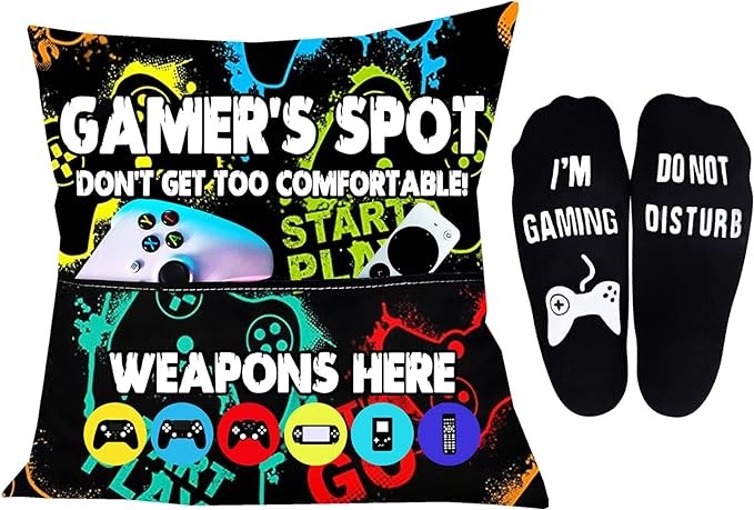 • 【Best Gamer Gifts】 Best Christmas gifts Birthday Gifts for Gamers teenage boys Girls Men Sons Grandchildren Boyfriends. They’ll surely get a kick out of this personalized gift basket which includes 1* soft fabric 18*18inch gaming pillow cover (cover only, insert not included) and 1* pair of Do Not Disturb I'm Gaming Novelty Socks. Ready to get compliments from Gamers!