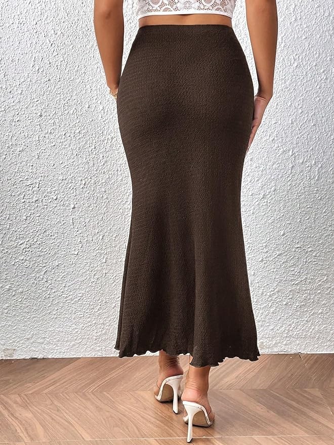 GORGLITTER Women's Solid Pencil Skirt Lettuce Trim Bodycon Long Skirts Dress