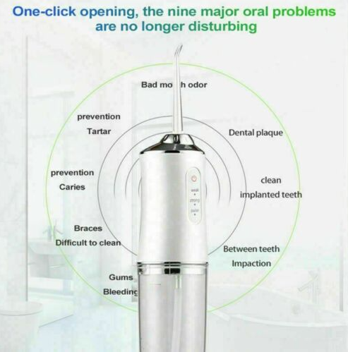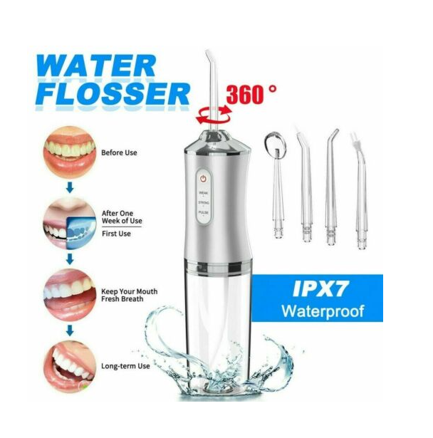 Cordless Dental Water Flosser Oral Irrigator Teeth Cleaner with 4 Jet Tips Floss