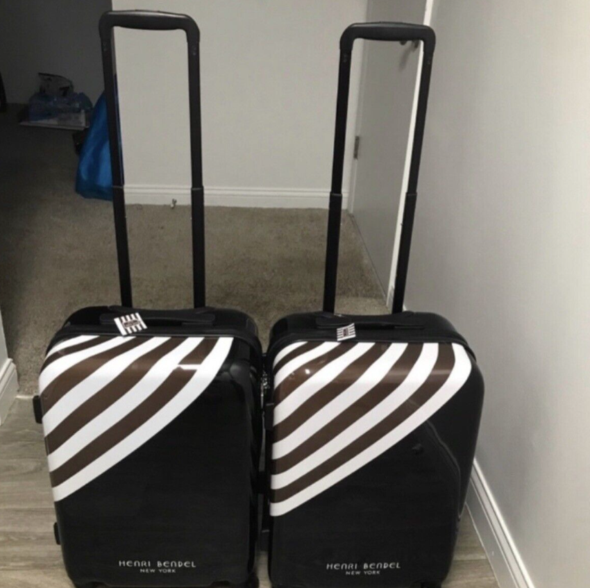Henri Bendel New York Black with Brown & White StripeHard-Sided Luggage Wheelie