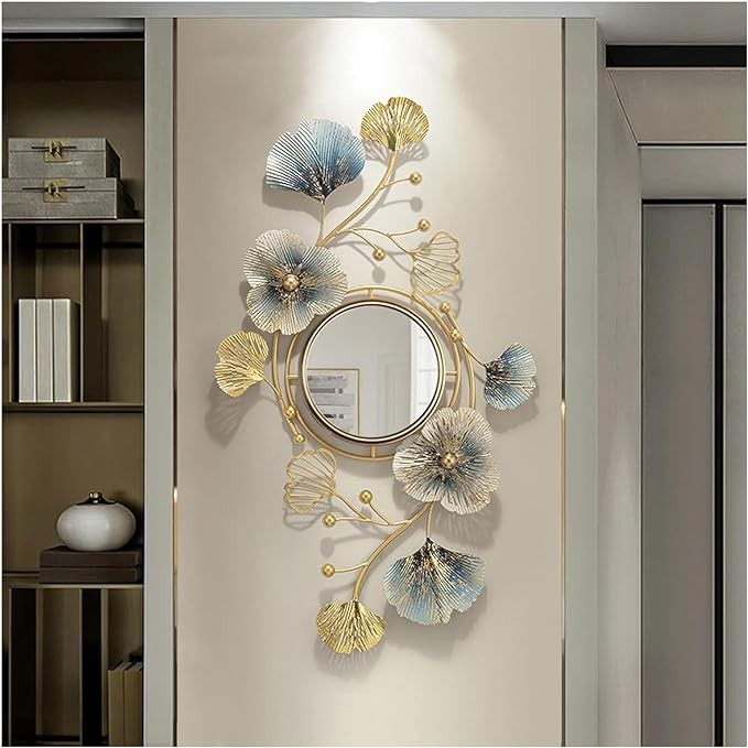 MODERN DESIGN: Creative handmade metal decorative Wall Mirror, The ginkgo leaf shape wall is made of wrought iron material forging, strong three-dimensional effect, High temperature resistant paint makes bright colors not easy to fade. Beautifully wall mirror of metal in a design that gives any indoor wall a striking dimensional look.