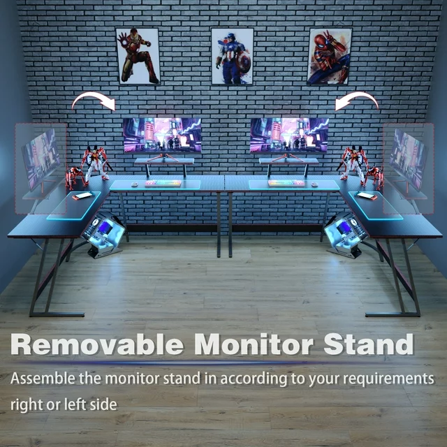 Homall L-shaped gaming desk and office desk has a spacious desktop that can meet various forms of use. Whether you use it to play computer games or use it for office work, we have carbon fiber and wooden table tops you can choose, it will definitely satisfy you here. L-shape can be well adapted to the corner environment to save enough space. The spacious desktop is enough to place all your electronic devices, and removable monitor stand could be installed on either the left or right side, convenient for you to use, let every gamer get the best gaming experience.