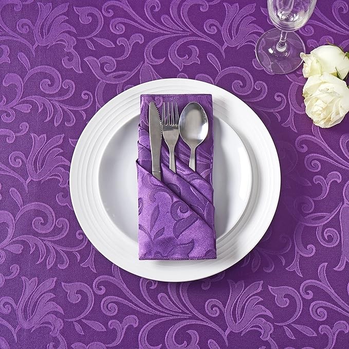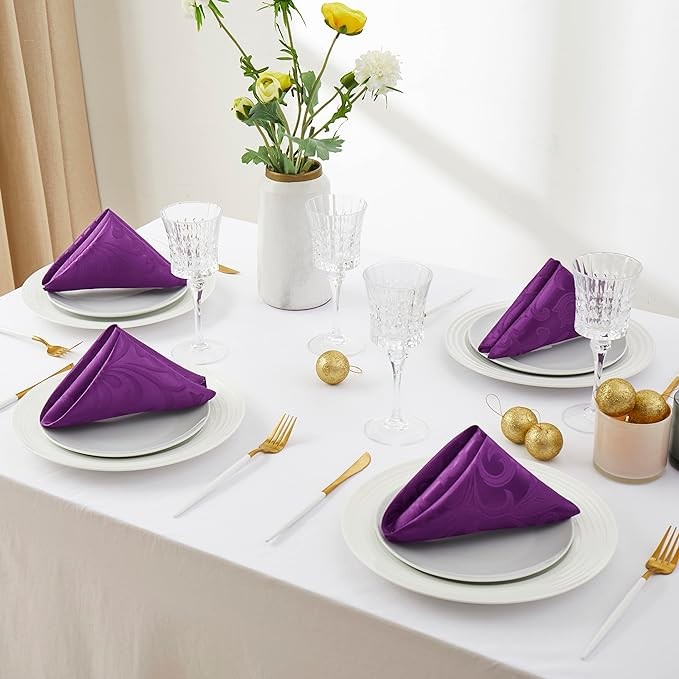 HommxJF 16 Pieces Scroll Damask Jacquard Satin Napkins Purple Cloth Napkins 17 x 17 inch,Water Resistant Spillproof Dinner Napkins for Restaurant Weddings Party Dinner Decoration