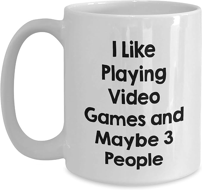 • Enjoy a relaxing morning coffee or tea while expressing your love for video games with this unique "I Like Playing Video Games And Maybe 3 People" white coffee mug. Made from sturdy ceramic, it's microwave and dishwasher safe for your convenience.