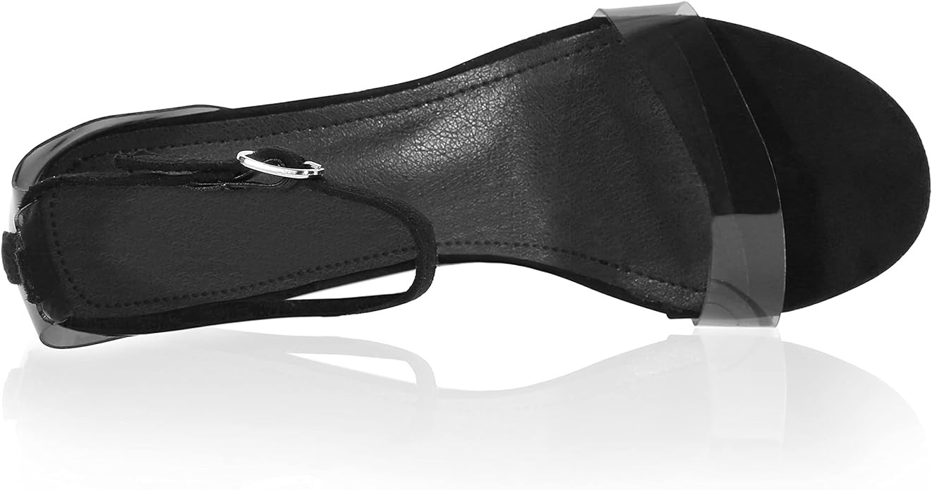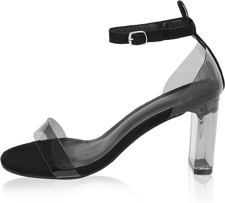 iCKER Women's Clear Heeled Sandals Ankle Strap Block Chunky High Heel Open Toe Pump Sandals